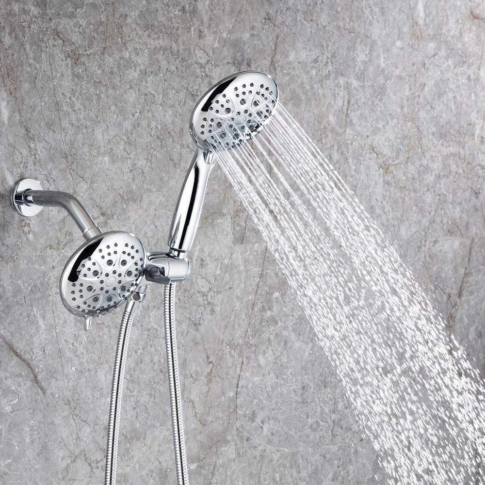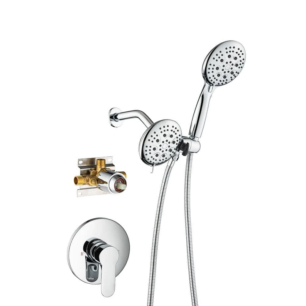 - Included:‎ handheld shower head, 71 in. shower hose, overhead shower head, rough-in valve and trims, shower arm with flange