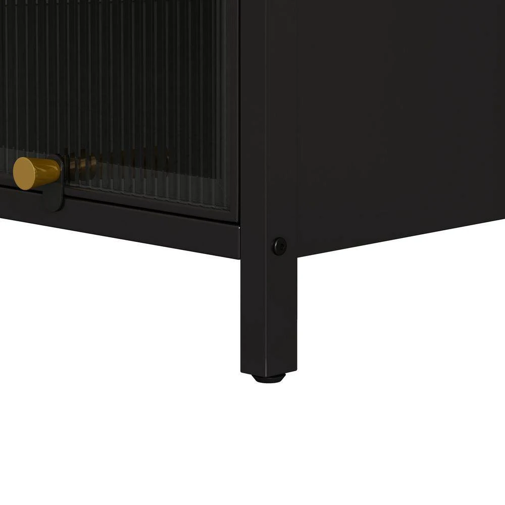 This sideboard has a contemporary, minimalist style with sleek lines and a high – end matte black finish that suits any decor. It’s made of Iron + tempered glass, crafted meticulously for stability and durability. The fluted glass design offers great light transmission while maintaining privacy, adding a modern aesthetic to high – end homes.Protective foot pads prevent floor scratches. 4 closed cabinets are perfect for storing daily items and keeping them dust – free, and the spacious upper counter can display essentials or decorations.Assembly is easy. With all hardware included and detailed instructions, you can quickly set it up.