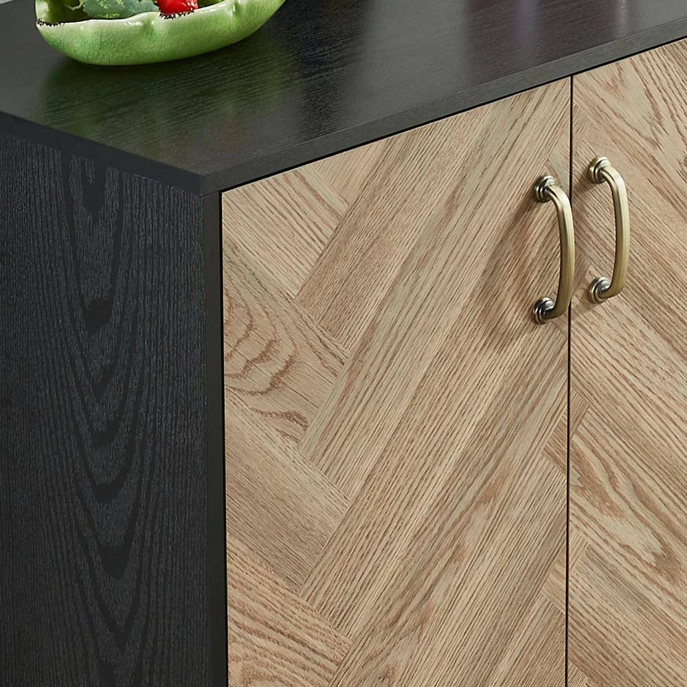 Our JaydenMax Modern Buffet Storage Cabinet is a paragon of quality and functionality. Constructed with durable and sturdy engineering board, combined with eco-friendly engineered wood and solid wood, it offers remarkable durability. This robust build ensures longevity and resistance to deformation, providing you with a reliable and long-lasting piece of furniture for your home. Not only is it tough, but it also stands out in terms of aesthetics. The cabinet flaunts an exquisite 2-tone color scheme that adds a touch of modern elegance. Complementing this is its vintage and charming wood grain texture, which gives it a classic, timeless appeal. Functionality is at the heart of this design. Inside, you’ll find a practical interior shelf that provides ample storage space for your kitchenware, office supplies, or dining essentials. Whether it’s in the kitchen, office, dining room, or living room, this sideboard buffet cabinet is ready to meet your storage needs with style and durability.