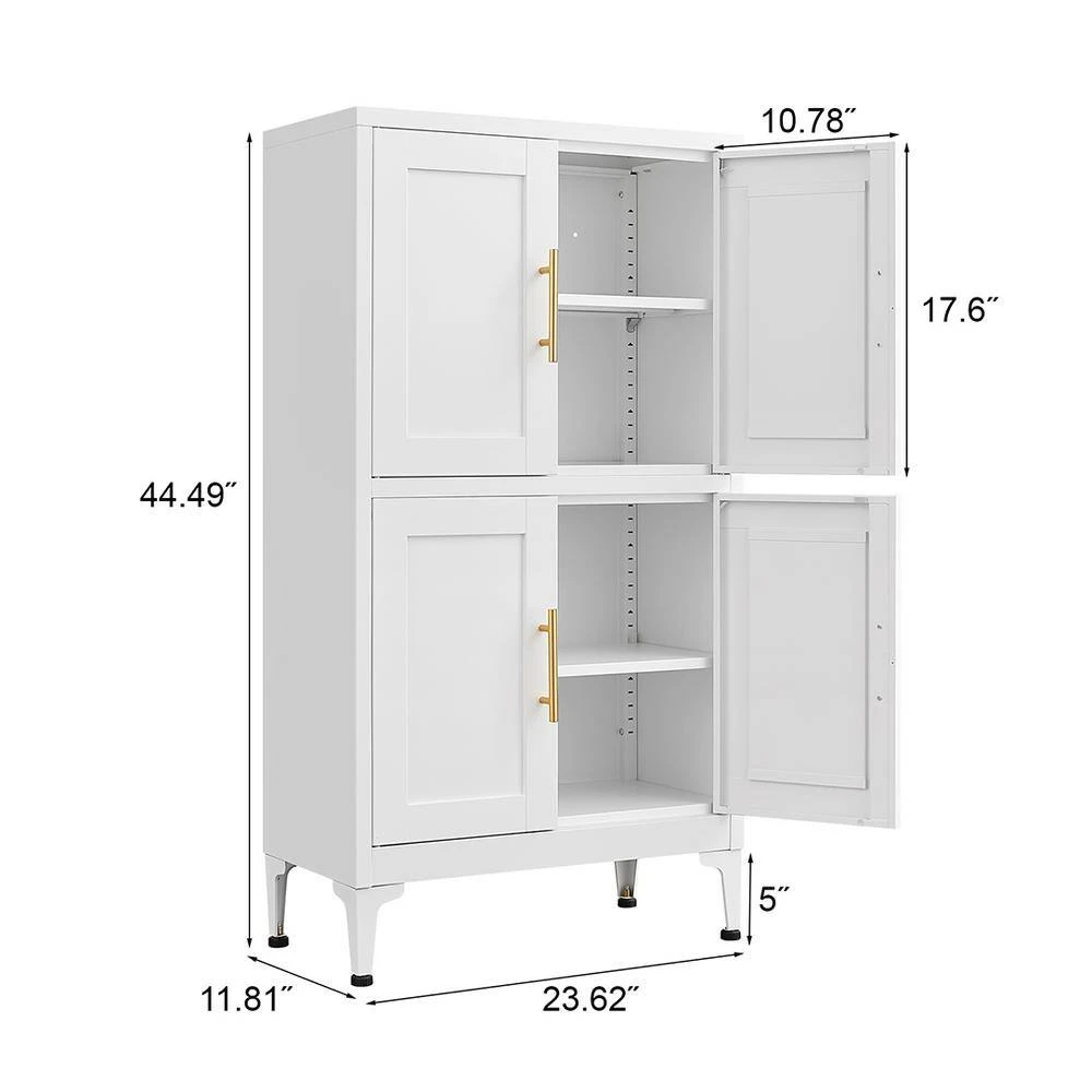This free-standing pantry cabinet is a game-changer in kitchen storage solutions. Each shelf has an impressive load capacity of up to 120 lbs. Crafted from heavy-gauge cold-rolled steel plate, it outshines traditional wooden or plastic cabinets in multiple ways. It’s corrosion-resistant, ensuring long-term durability even in the humid kitchen environment. Cleaning is a breeze, and it’s completely odorless, maintaining a fresh and pleasant kitchen atmosphere. Moreover, its construction offers enhanced stability. Safety is a top priority with this pantry cabinet. There are 2-pre-holes on the back, which enable easy mounting to the wall, effectively preventing tipping and ensuring the safety of your household, especially if you have children or pets around. Functionality is at the heart of its design. Equipped with 2 adjustable shelves, it provides flexible storage options. You can effortlessly store household items, small appliances, cookware, and a variety of other kitchen essentials, helping you achieve a clean and tidy kitchen space. Assembly is a stress-free process. The storage cabinet with shelves features a knock-down structure. All accessories are clearly marked with numbers, and our product page offers a detailed installation video. This means that even if you’re not a DIY expert, you can easily put the cabinet together and start enjoying its benefits in no time.