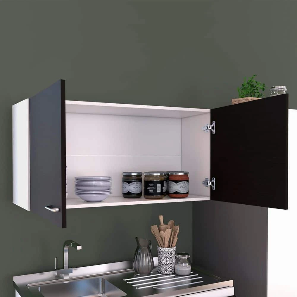 This wall mounted double cabinet measures 39.30 in. width and 12.60 in. height. It provides a large space where you can store customers’ bowls and other kitchen utensils. By doing so, it helps keep the home clean and tidy. With its elegant and dignified black and white color combination, it creates a pleasant visual experience, making people feel happy. Moreover, the installation process is simple, allowing you to set it up with ease.