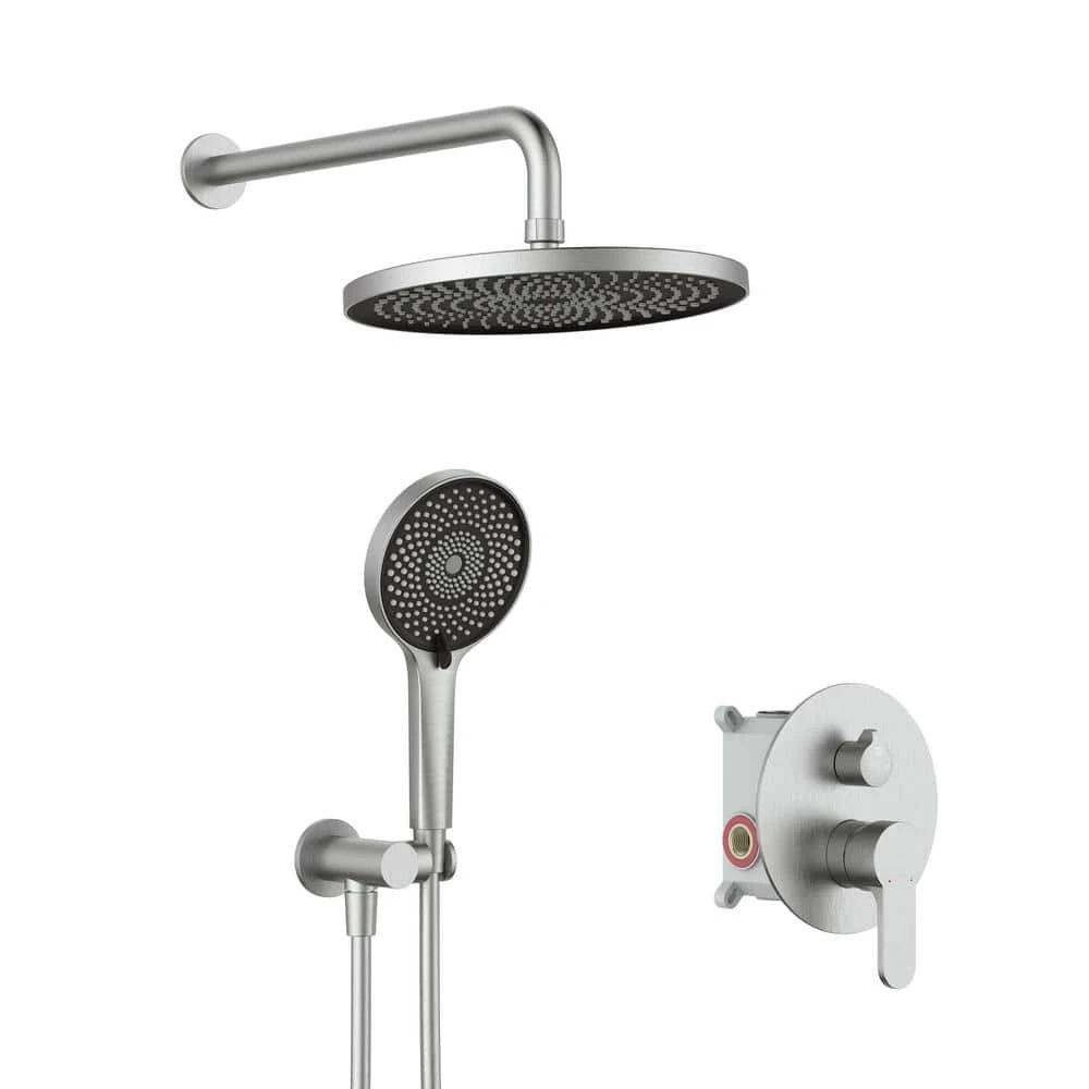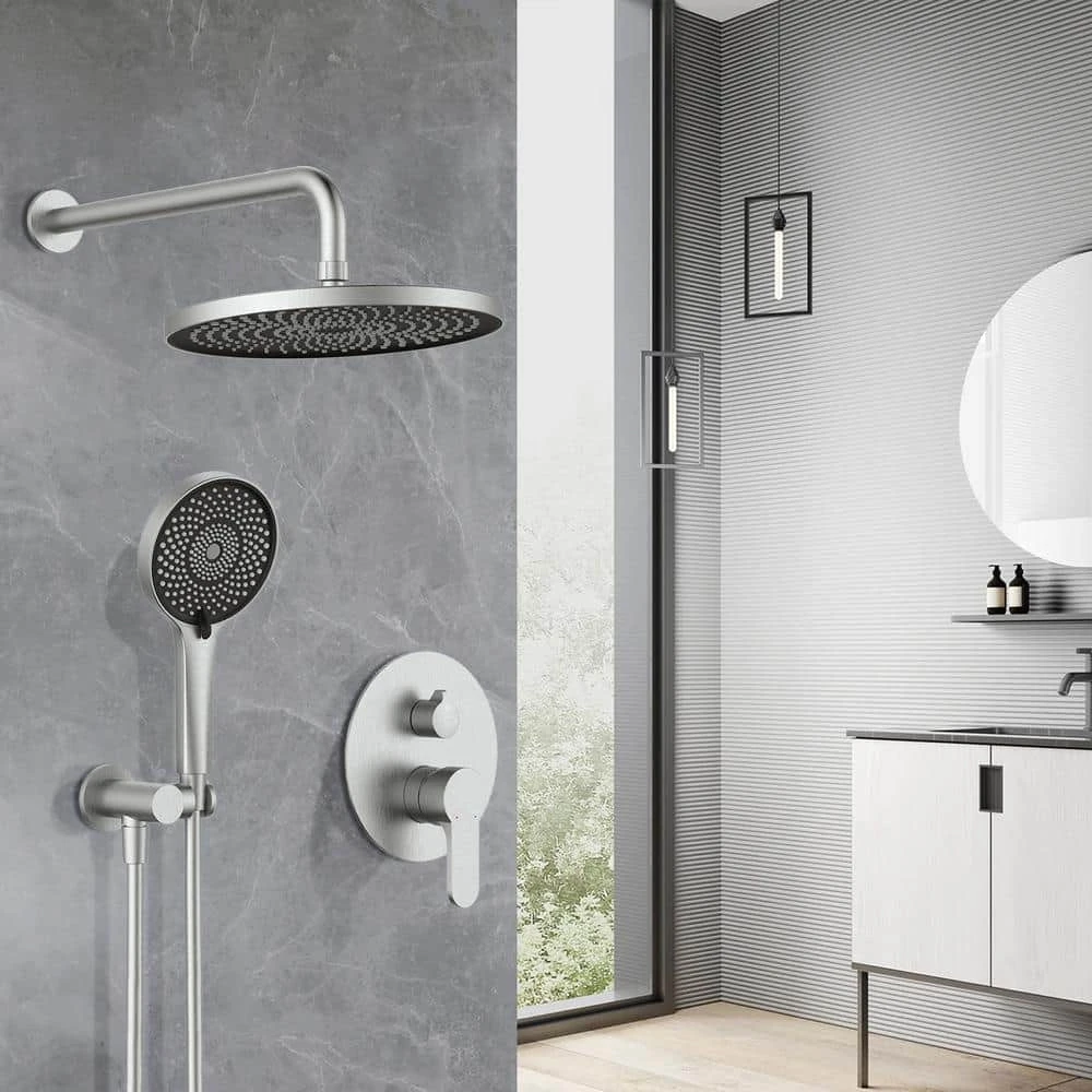 This is a shower set with a round design, in line with various modern decoration styles, it can make your bathroom more luxurious. Rain shower experience, make you more relaxed, feel like in a luxury hotel spa. All accessories are included In our package, you can install and use according to the user manual, NPT 1/2 connector, compatible with most existing shower faucets.