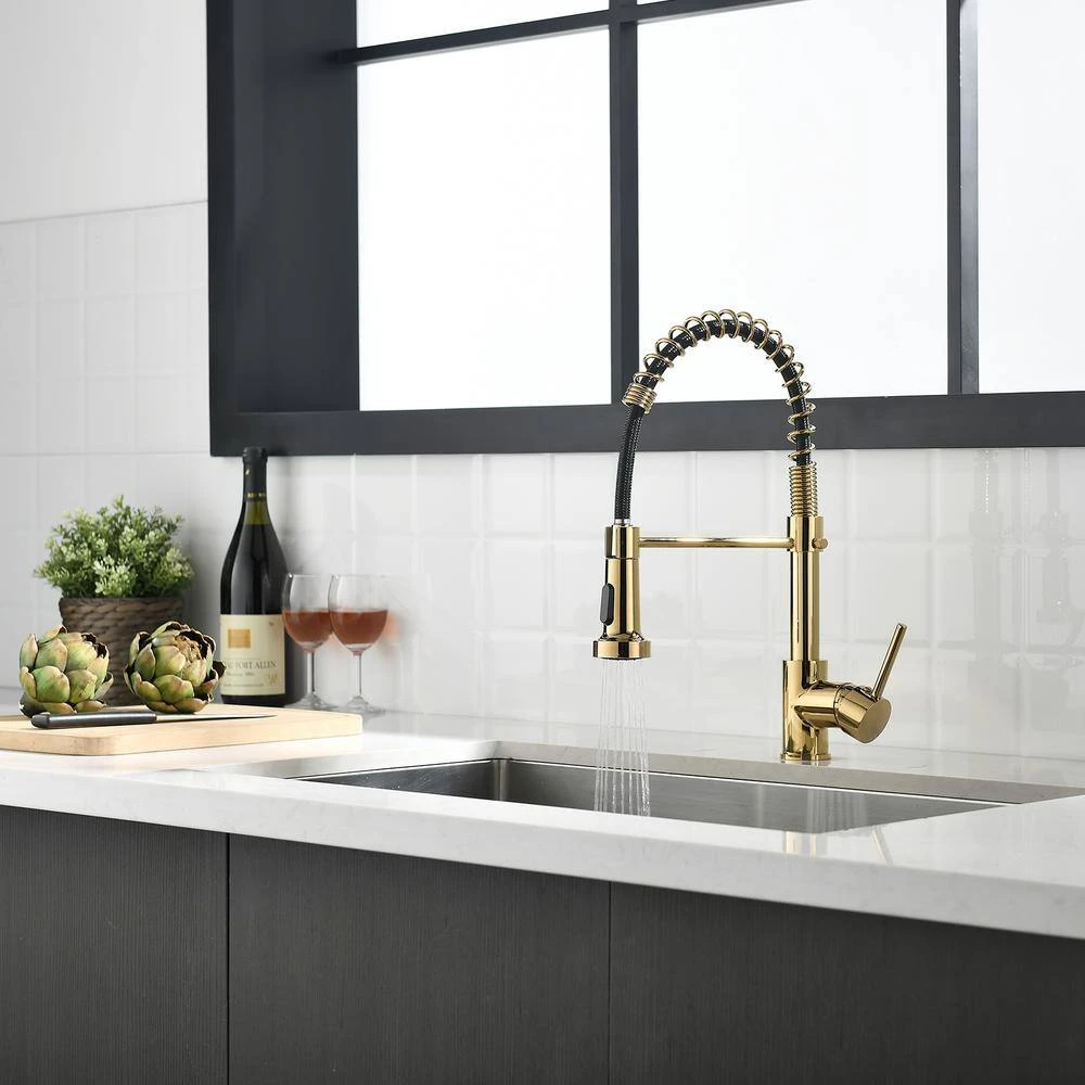 The high-arc faucet with practical pull-down retractable hose will elevate the functionality and style of any kitchen. Crafted from superior quality brass finish, the single-hole faucet will remain spot-free and ensure long-lasting, corrosion-free performance and durability. The convenient pull-down spray hose with 2 versatile spray modes allows long reach and the 360° rotation spout allows extra flexibility.