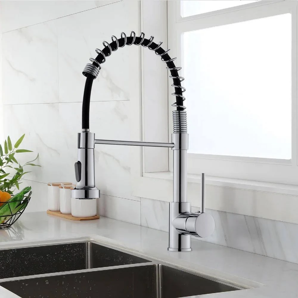 Single Handle Deck Mount Pull Down Sprayer Kitchen Faucet In Silver