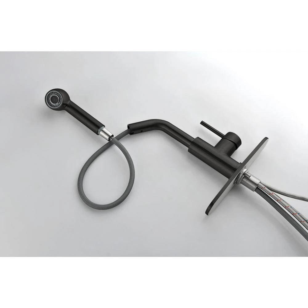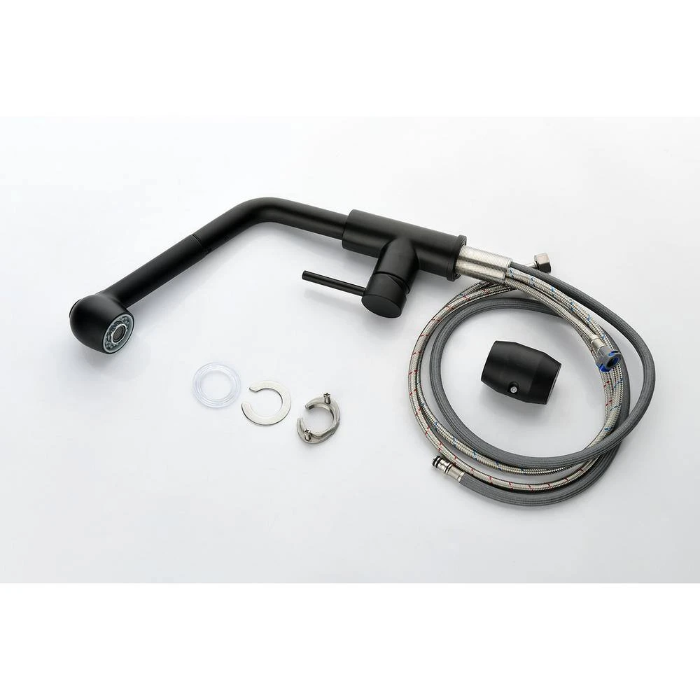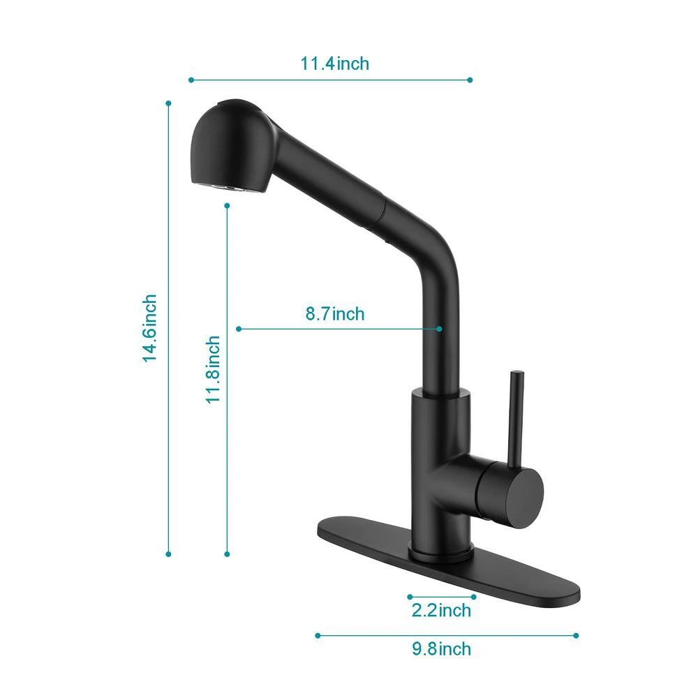Single Handle Kitchen Sink Faucet With Pull Out Sprayer In Matte Black
