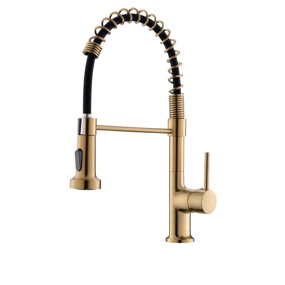 - Captivating industrial design: the brushed gold kitchen faucet features a high-arc open coil spout, creating an appealing industrial look for your kitchen