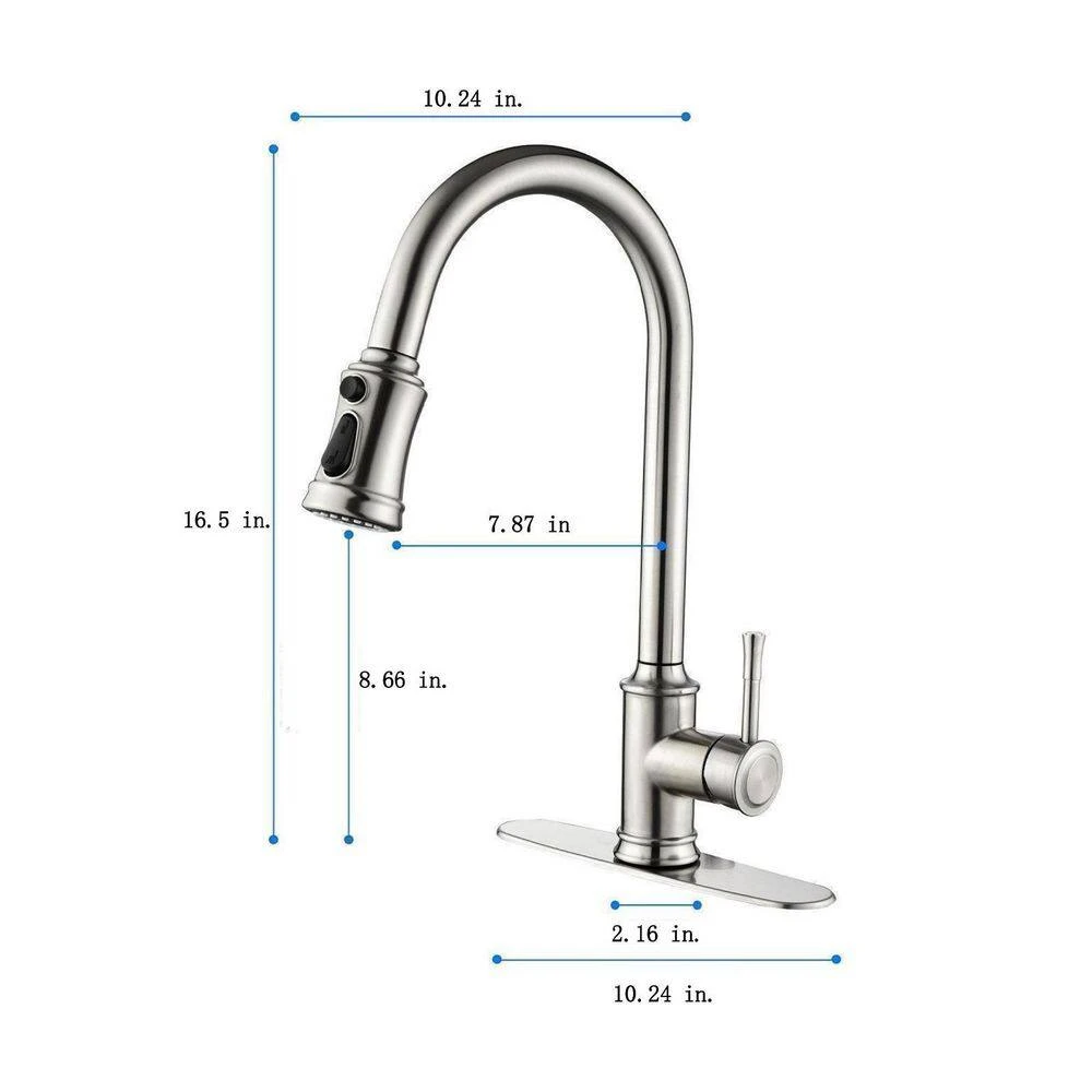 Unlike traditional kitchen faucets. No more getting your hands dirty with the single lever handle, you can start and stop water flow by simply touching anywhere on the gooseneck of the kitchen faucet with your hand or forearm. Our kitchen sink faucets are made of stainless steel for excellent corrosion resistance, with a rust-resistant brushed nickel finish that won’t stain. 20