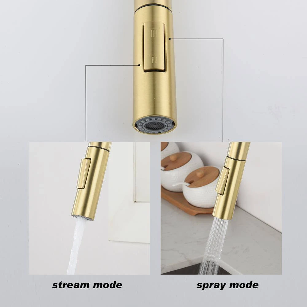 Single Handle Wall Mount Gooseneck Pull Down Sprayer Kitchen Faucet With Deckplate Included And Handle In Brushed Gold