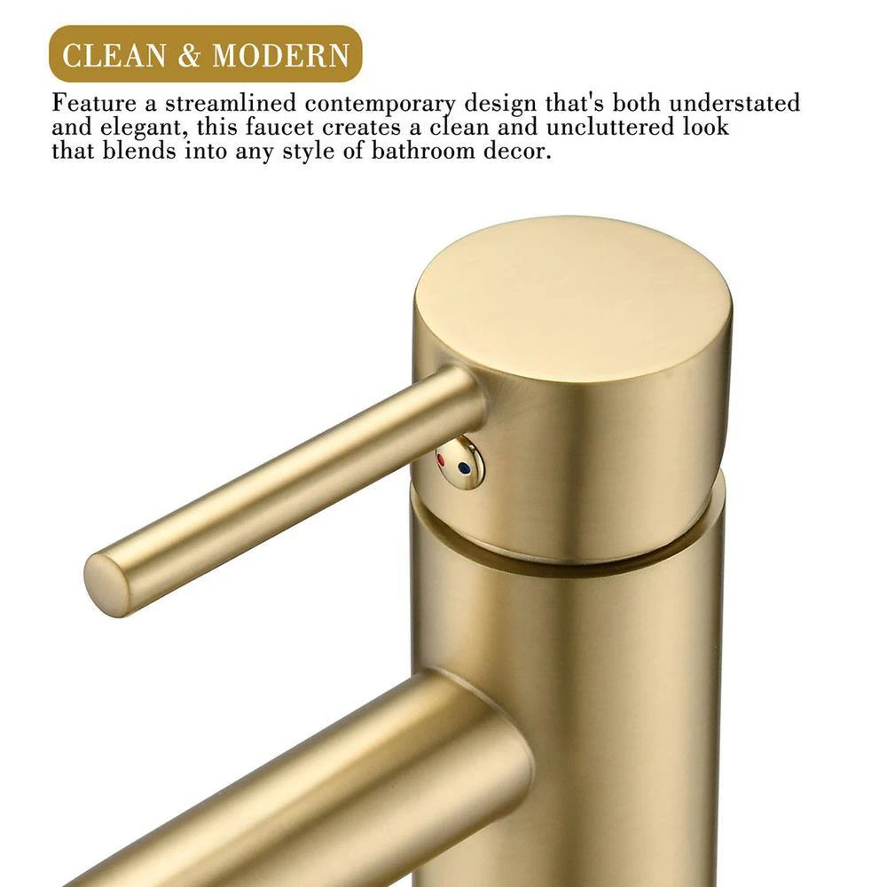 - Brushed gold bathroom faucet is suitable for single-hole sink or 3-hole sink for easy installation (include a deck plate)