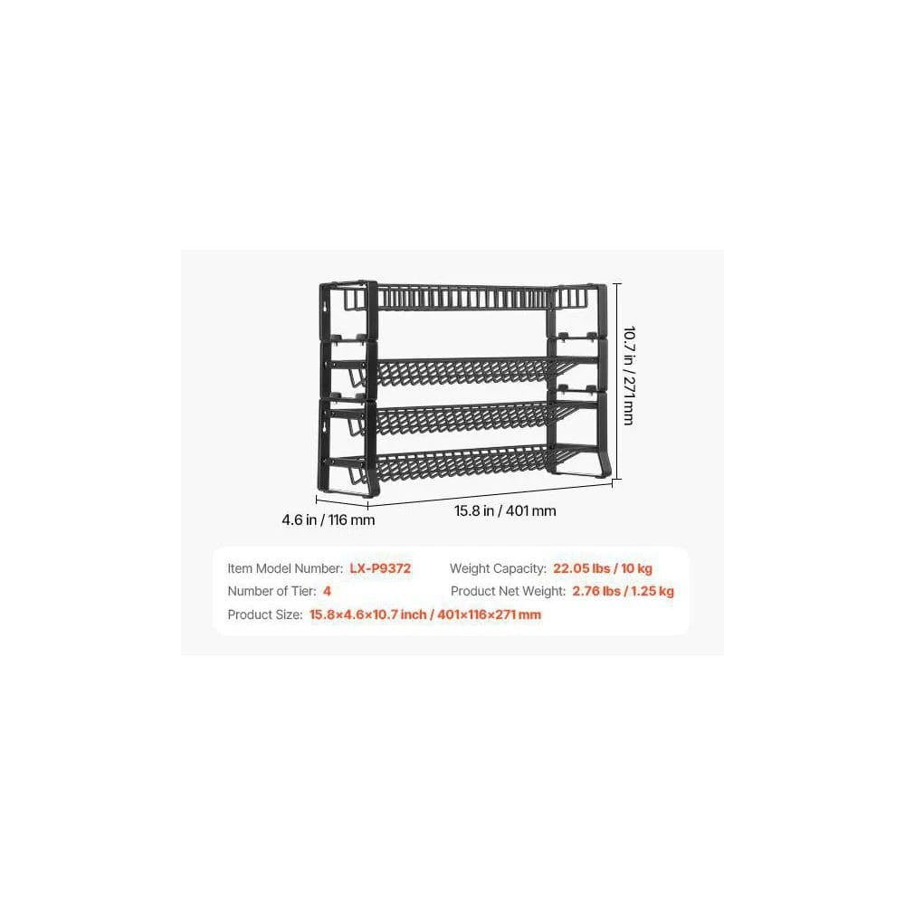 This spice rack organizer offers multiple combination options: the two-tier main rack provides ample storage for most spices, while the additional two single-tier racks can be added or used separately as needed, allowing flexible adjustment and rearrangement to meet diverse storage requirements for different types and quantities of spices. Its stable stacking design features secure connection points fastened with strong screws and nuts, ensuring structural stability and safety whether stacked or used individually, so it can reliably hold all types of spices in any arrangement. Versatile in placement, it works both on countertops-saving cabinet space-and when wall-mounted, utilizing vertical space to keep countertops tidy, with stable support for convenient spice management in either setup. Crafted from a Q195 steel frame, it boasts enhanced weight capacity and structural stability, resisting deformation or breakage even with numerous spice jars, ensuring long-lasting reliability. Beyond spice storage, it adapts easily to other uses, making it a practical addition to kitchens for organizing various small items.