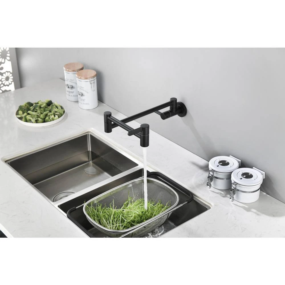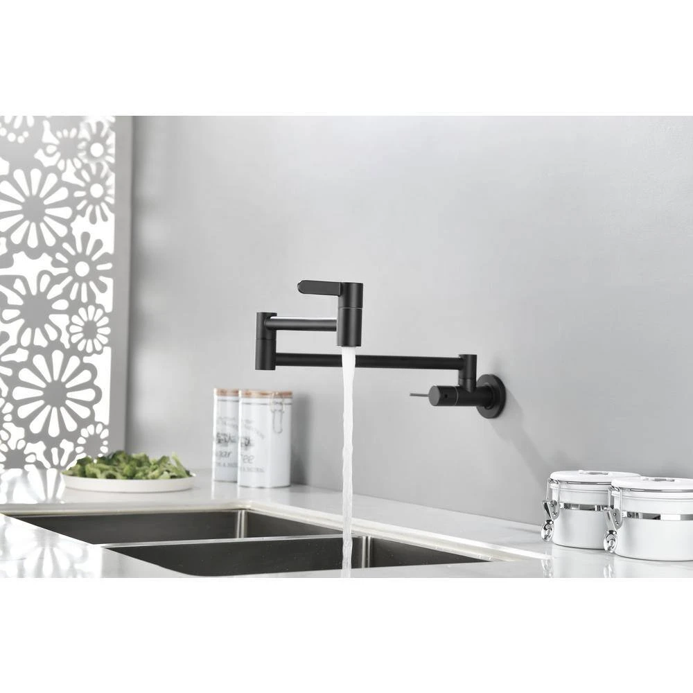 The pot filler faucet boasts a versatile free-swivel arm design, allowing for effortless filling of pots directly on the stovetop and ensuring easier access for cleaning. Equipped with double handles, this faucet offers precise control over water flow, enhancing ease of operation while effectively preventing any unwanted drips. The surface has been meticulously treated to resist corrosion and fingerprints, ensuring a long-lasting and pristine appearance. Additionally, a high-quality aerator is incorporated to deliver a quiet, splash-free water stream, providing a seamless and enjoyable user experience.