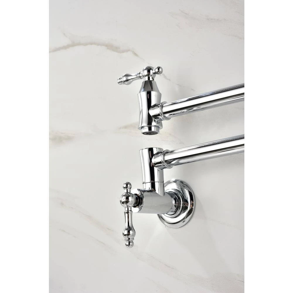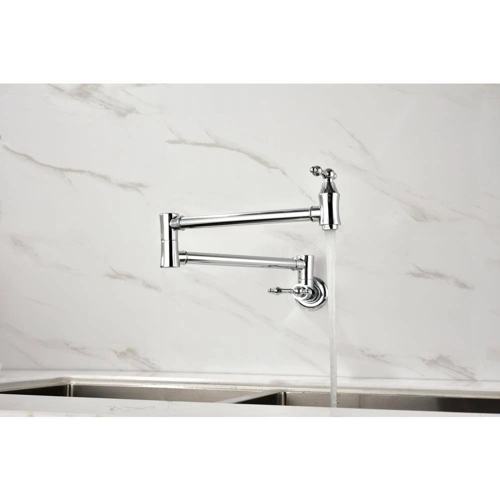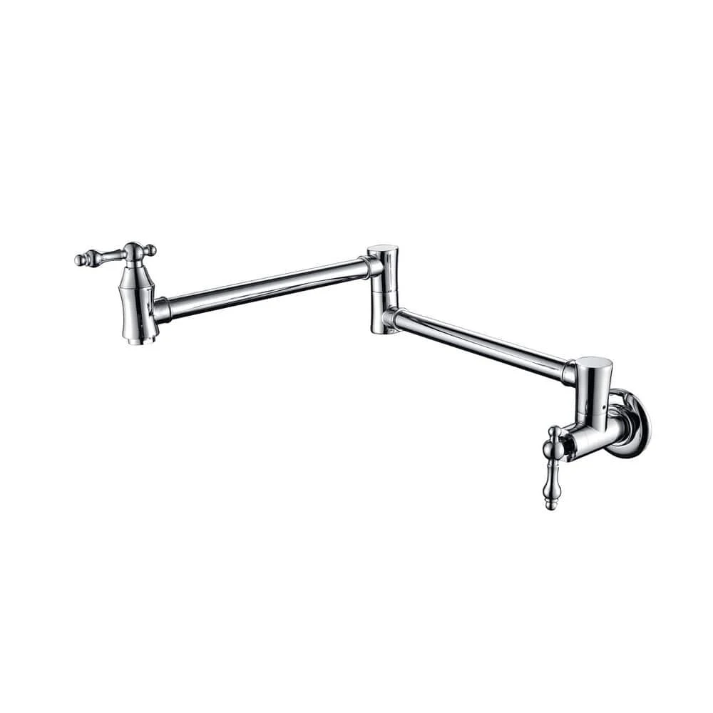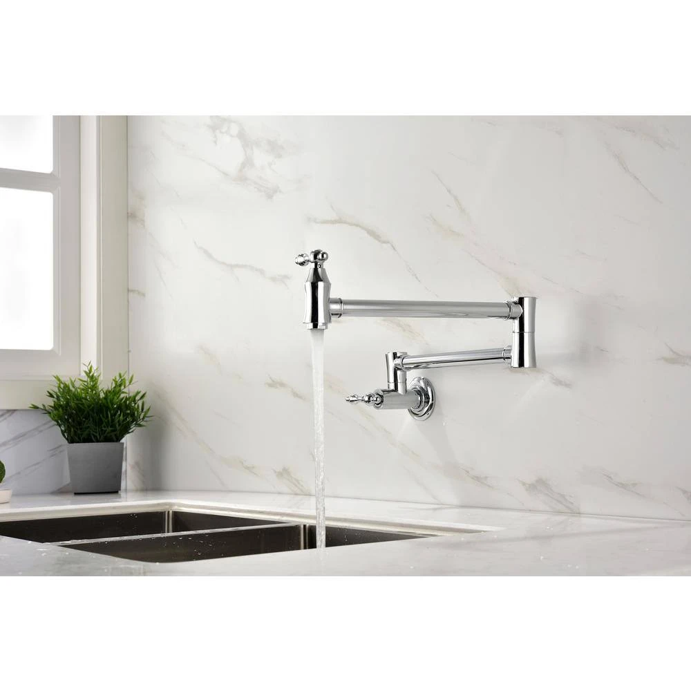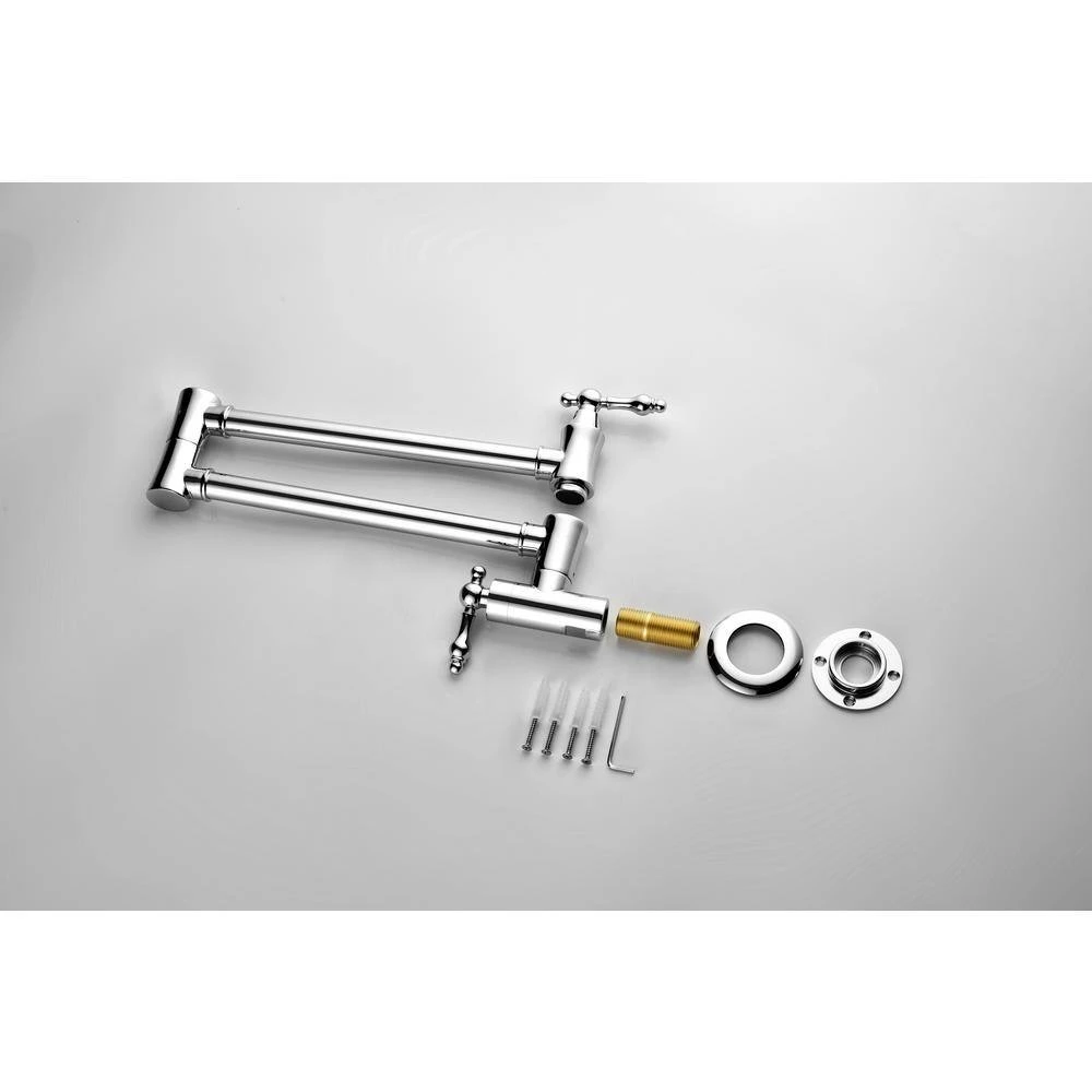 The pot filler faucet features a free-swivel arm design, making it easier to fill any pot on the stovetop and simplifying cleaning. The double handles ensure precise water flow control, facilitating operation and preventing dripping. Its surface is specially treated to resist corrosion and fingerprints. Additionally, a quality aerator provides a quiet, splash-free water flow, enhancing overall kitchen efficiency and convenience.