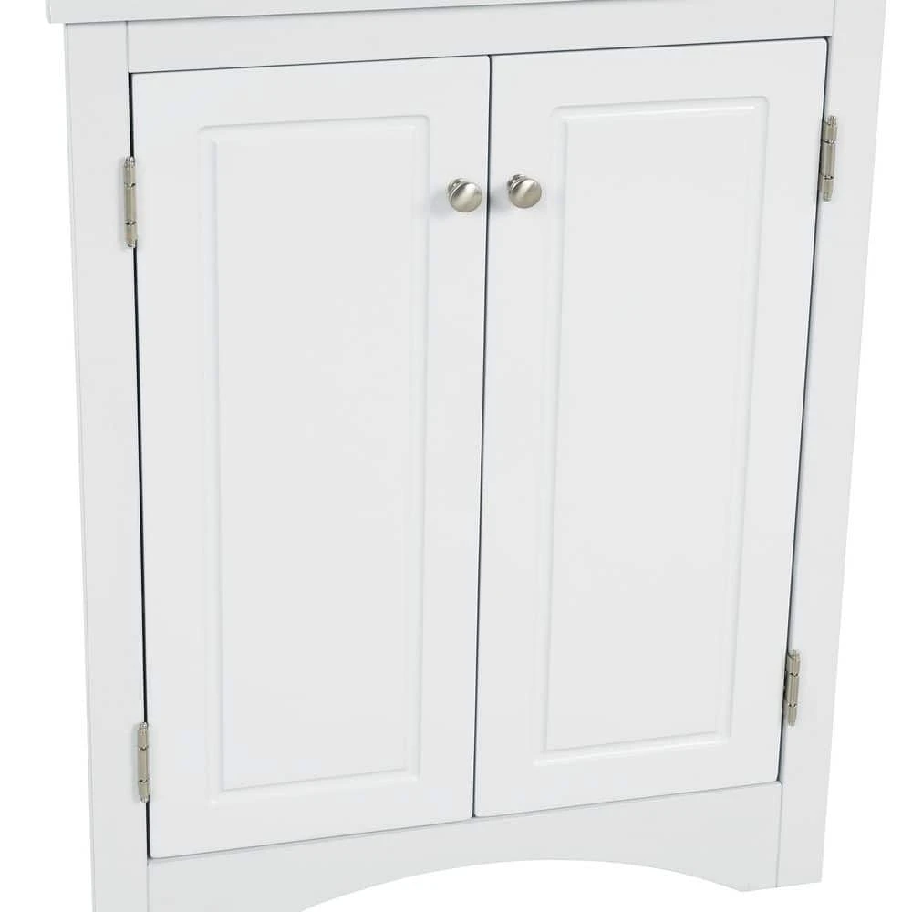 This corner storage cabinet offers affordable functionality and style, featuring a triangular design that maximizes unused corner or wall space while adding an elegant touch to any room. Crafted from high-quality waterproof MDF board (more durable than standard particleboard), it ensures long-lasting stability and easy maintenance, with a sleek finish that stays looking new. The cabinet includes adjustable interior shelves, allowing customizable storage for towels, toiletries, spices, snacks, or shoes in bathrooms, laundries, pantries, or living areas. Its closed storage with doors keeps items dry and clutter-free, while the brushed nickel knobs provide easy access. Available in 3 colors to suit different decor styles, the cabinet supports versatile use in compact spaces. Assembly is straightforward with the included illustrated manual and hardware pack, making it a practical and stylish solution for organizing essentials while enhancing home aesthetics.